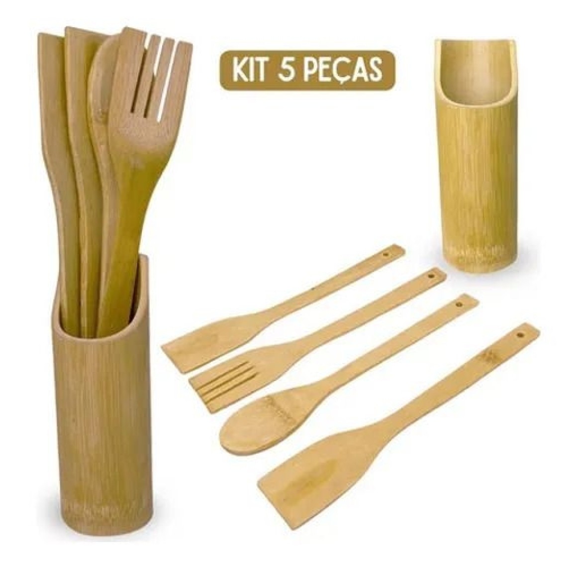 Conjunto de Utensílios de Bambu | CX143 – Praticidade, Sustentabilidade e Elegância na Cozinha